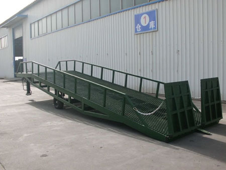 移動式登車橋是與叉車配合使用的貨物裝卸專用輔助設備,有了它叉車能直接從地面駛入汽車車廂內部進行批量裝卸作業。產品采用人工液壓動力,不需接動力電源。只需單人操作,即可實現貨物的安全快速裝卸。它可使企業減少大量勞動力,成倍提高裝卸作業效率,加快貨物流通速度,獲取更大經濟效益。