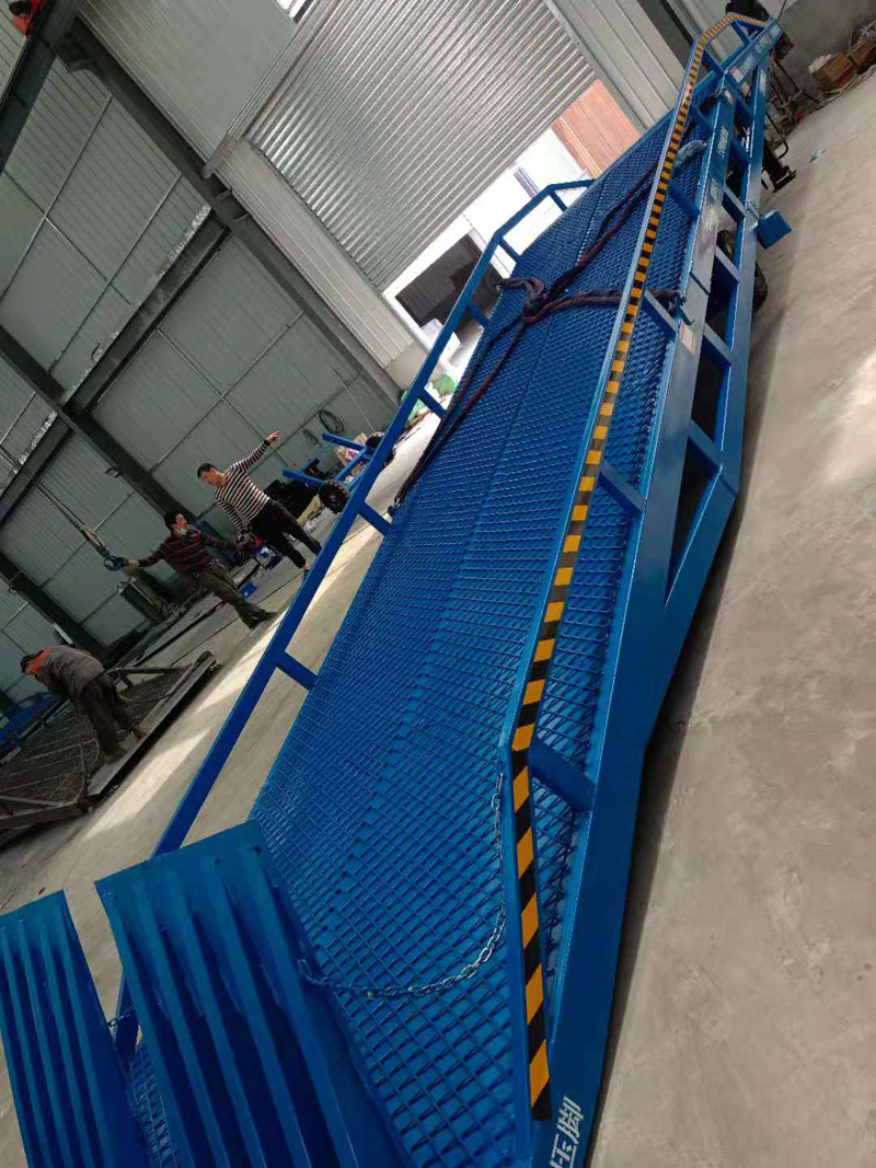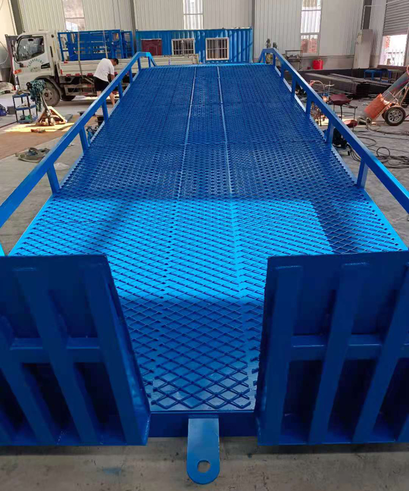 移動式登車橋在現(xiàn)代物流現(xiàn)場已是一非常易見的結(jié)構(gòu)形式,它是企業(yè)物流鏈的起點與終點,是企業(yè)快速、安全周轉(zhuǎn)產(chǎn)品及貨物的一個裝卸貨操作平臺。 裝卸貨操作平臺的高度固定,但來往運輸車廂的廂地高度不一,運輸車輛與裝卸貨站臺之間總是形成一定的高度落差或間隙。造成搬運叉車不能進出運輸車輛直接裝卸貨物。運用登車橋提供可靠的連接。使搬運叉車能夠安全、快速地進出運輸車輛進行裝卸貨作業(yè)。使用過程平穩(wěn)可靠,安全性能高,裝卸貨物時節(jié)約了大量時間,省卻了大量人力,使裝卸貨物大大的提高了效率。臺面采用特制的菱形網(wǎng)格板有可靠的強度,能保證長期使用而不變形。它的菱形網(wǎng)狀結(jié)構(gòu),充分保證了防滑性能,使叉車有更好的爬坡性和可操縱性,即使在雨、雪天氣,仍能保證正常使用。